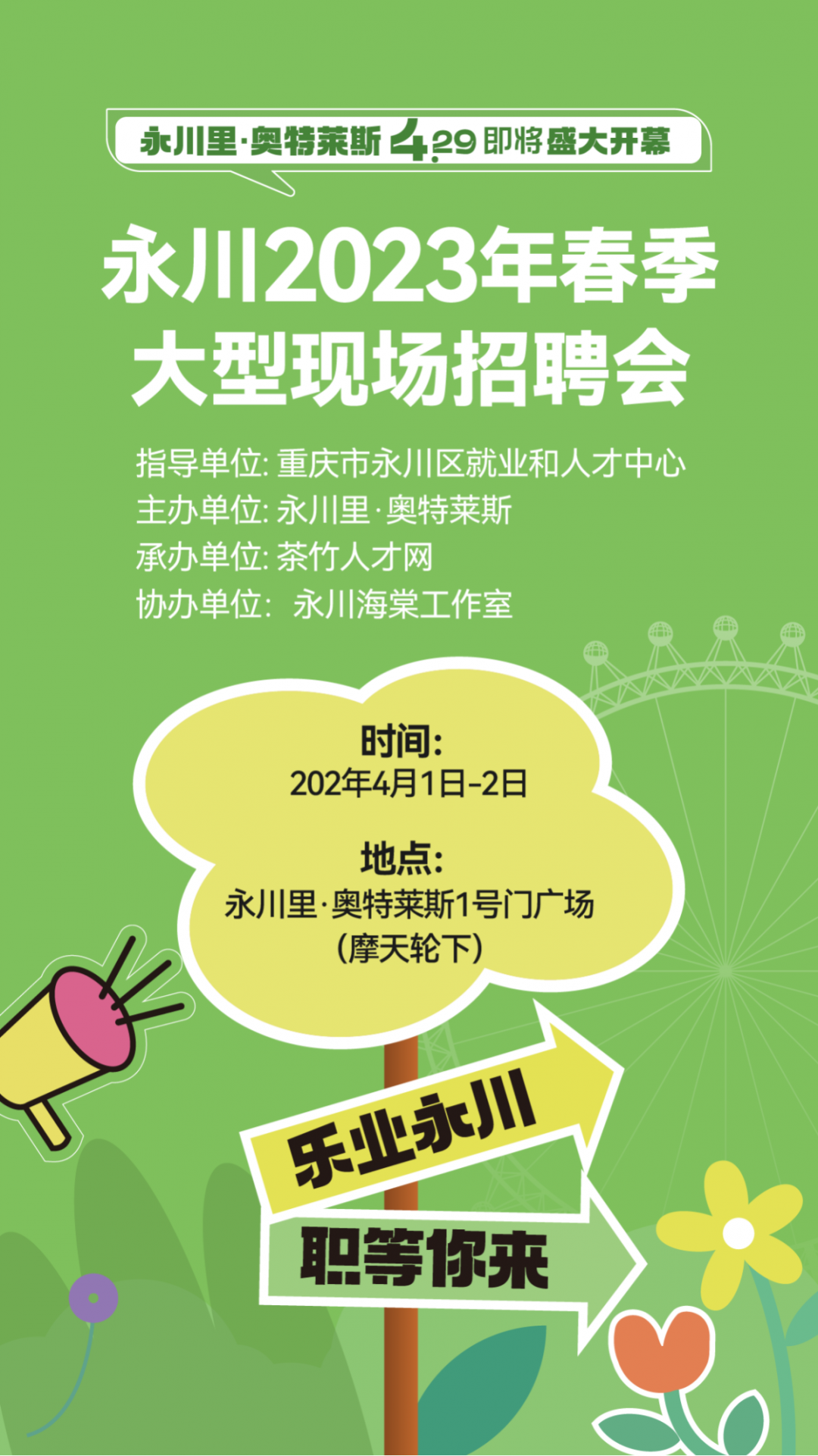 永川里·奥特莱斯丨永川2023年春季大型现场招聘会定档4月1日-2日!